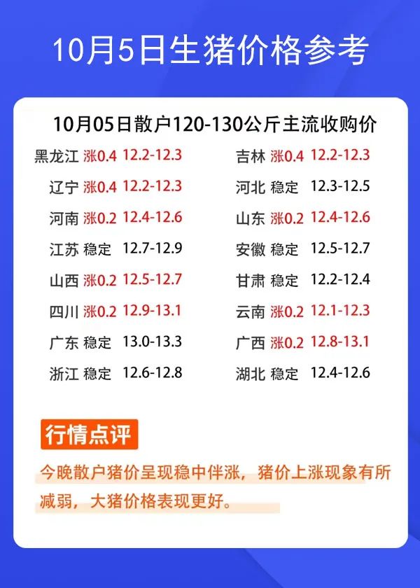 10月5日生豬價格參考